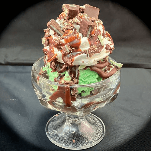 Mint chocolate chip ice cream, hot fudge, whipped cream and Andes mints together forever