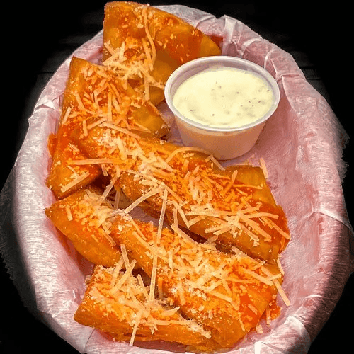 Fresh fried pita chips covered with franks buffalo sauce and shredded Parmesan cheese. Served with ranch