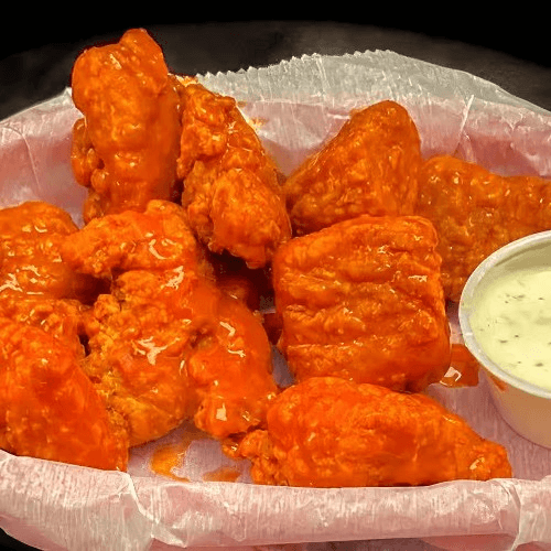 6 wings. Comes with regular side and either Texas toast or homemade slaw. No substitutions. Includes one dipping sauce