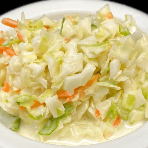 Crunchy shredded cabbage and carrots in a creamy dressing