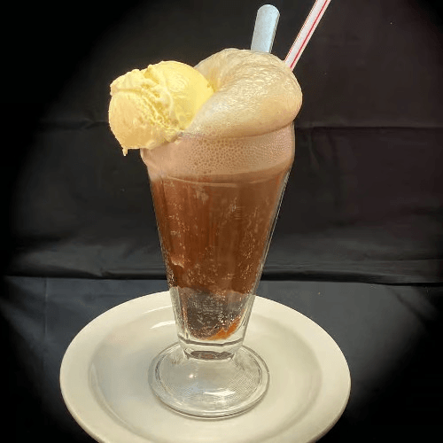 The classic root beer with a small scoop of ice cream. We may package the ice cream separately to keep it from foaming up during delivery