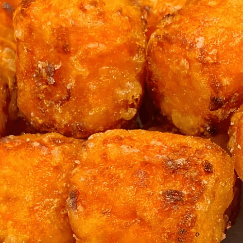 Golden, crispy sweet potato tater tots with a lightly salted exterior